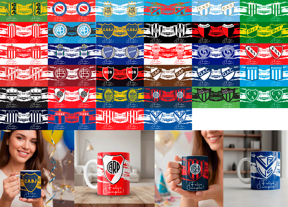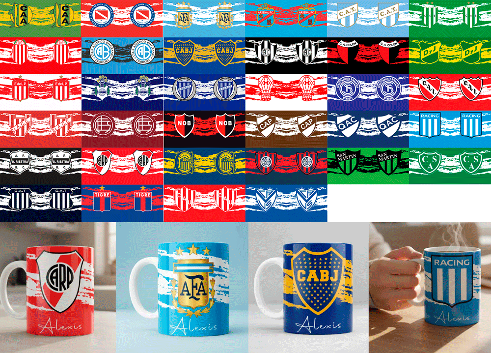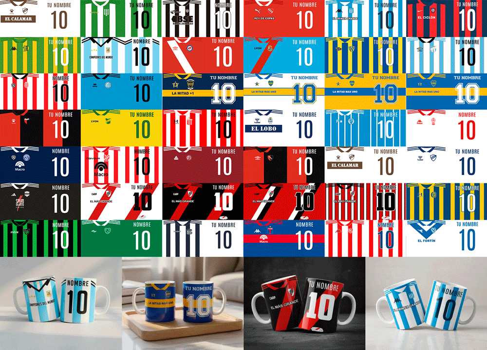 #10 PLANTILLAS DE TAZAS FÚTBOL ARGENTINO CON NOMBRE PERSONALIZADO 🇦🇷