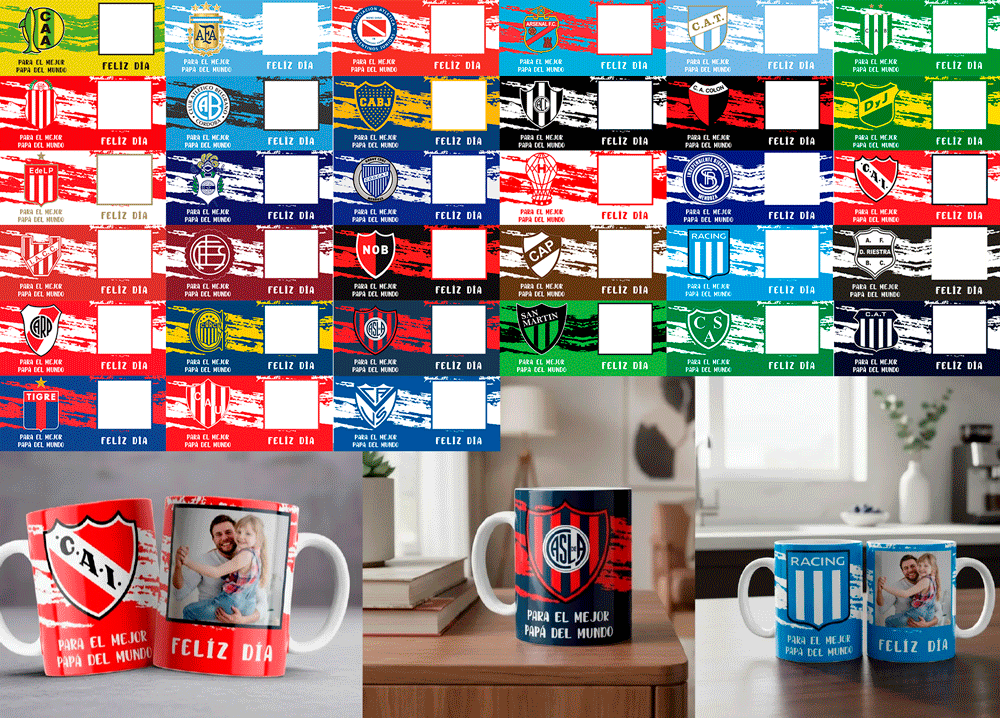 #8 PLANTILLAS DE TAZAS FÚTBOL ARGENTINO DIA DEL PADRE CON FOTO 🇦🇷